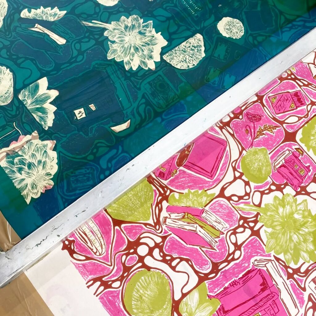 norwichuni_textiledesign Last week we ended the term with a design and print challenge for BA3 with Course Leader @katefarleyprint and technician @yasmine_carpenter – we are so pleased with the outcome after a fun session in the print workshop In three hours the design was created, put in repeat, and the screen artwork prepared. The following day, with screens exposed, thanks to @neildavison1969, the colours were mixed and printing began. I’m not sure we managed to capture everyone’s designs in the pictures here but the final major projects are definitely underway! There was brilliant teamwork and festive spirits all round. A fabulous result to end the year! Well done all. (opens in a new window)