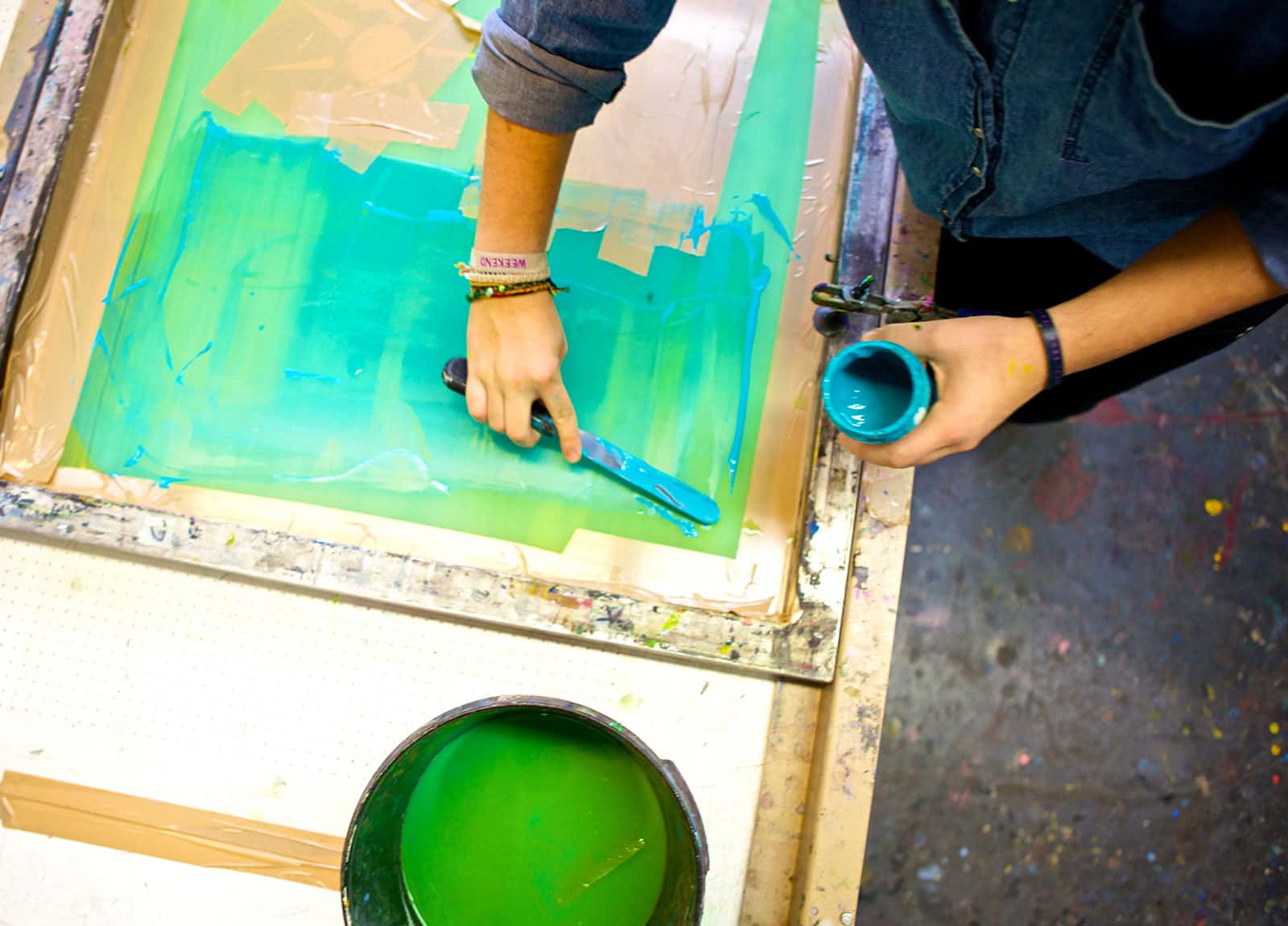 The Print Making Workshop is divided into two areas — A water-based silkscreen workshop (SG47) with supporting darkrooms and screen reclaiming room, and a Multi-process workshop (SG50) that supports intaglio practices, etching, relief print and mono-printing — Included is a computer facility to support up to A3 sized print “transparent positive” production.